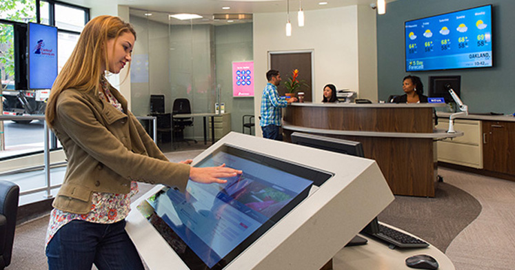 “La tecnología digital no debería ser un complemento de las prácticas y procesos existentes. Debe integrarse en las interacciones con los clientes y en el trabajo diario de los empleados. El objetivo debería ser migrar más del 90 por ciento de las actividades simples de los clientes a formatos asistidos o de autoservicio; tener procesos simples, unificados y sin papeles para ventas y servicio; y utilizar análisis de próxima generación para ofrecer ofertas personalizadas que sean verdaderamente relevantes para los clientes. Mientras que las sucursales bancarias tradicionales son reactivas y están orientadas al servicio, las sucursales inteligentes son proactivas y se centran directamente en las necesidades de los clientes ". Las necesidades del cliente primero. Hemos escuchado eso antes en AV. Entonces, ¿cómo puede la tecnología audiovisual ayudar a que una sucursal bancaria sea más útil en un mundo en línea? Bueno, puede hacer lo que AV hace mejor: ayudar a las personas a sentirse más conectadas, tanto con el personal bancario como con la información.
