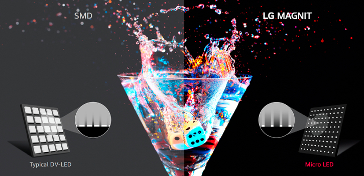 El método avanzado y preciso de LG MAGNIT para la unión directa de chips de tamaño micro en placas de circuito, combinado con la tecnología de recubrimiento negro y el espacio reducido entre los chips y la placa, crea una impresionante expresión negra que se destaca en comparación con las pantallas LED de tipo SMD. Esto lo convierte en la opción ideal para mostrar contenido que requiere un color negro profundo, lo que garantiza que cada imagen sea rica, vibrante y realista.