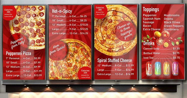 Contamos con pantallas profesionales diseñadas exclusivamente para los QSR. Pueden estar en funcionamiento las 24 horas del día, los 7 días de la semana y están protegidas contra el vapor, polvo y altas temperaturas que las puede corroer en ambientes hostiles.