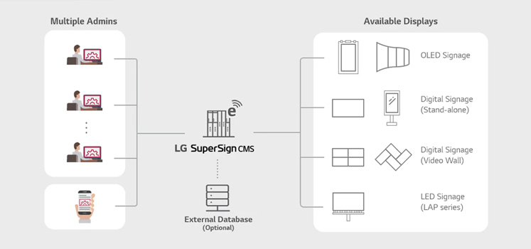 SuperSign CMS es una solución de software de administración de contenido optimizada para señalización LG webOS.