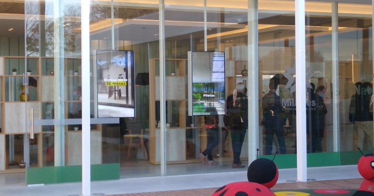 - Equipamiento del showroom con pantallas de alto brillo para vidrieras, visibles desde el exterior, incluso con luz natural intensa.